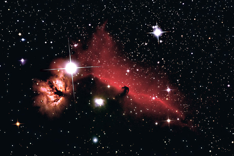Der Pferdekopfnebel wurde von Edward Barnard entdeckt und ist im Barnard-Katalog der Dunkelwolken unter der Nummer 33 zu entdecken. Daher wird der Pferdekopfnebel als B33 bezeichnet. Die Dunkelwolke liegt VOR dem roten Emissionsnebel IC 434 und bildet so den bekannten Pferdekopf. Mit der Zeit deformiert sich diese Dunkelwolke und in einigen Jahrtausenden ist B33 nicht mehr als Dunkelwolke in Pferdekopfform zu sehen.