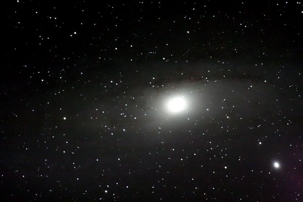 Scheinbar geht es ihm schon darum, auch wenn es ihm nicht vielleicht gar nicht bewusst ist. Letztendlich wollen wir doch alle das Maximum aus den Bildern holen… oder etwa nicht? ![]() Im Anhang habe ich mich mal an seinem M31 ausgetobt. Mehr geht nicht, da die Aufnahme zu wenig verwendbare Informationen enthält und nicht sehr stark bearbeitet werden kann, da ansonsten das Bildrauschen zu sehr durchkommt. Meine Bearbeitung ist sowieso schon wieder fast zu übertrieben… unten rechts sieht man bereits das Verstärkerglühen des 350D-Bildsensors. Martin hat außerdem 1600 ISO verwendet und das ist zu viel, um großartig etwas aus einer einzigen Aufnahme heraus holen zu können. Wie gesagt, erst die anderen genannten Probleme lösen und dann können wir über Bildbearbeitung weiterreden. Viele Grüße, Tobi