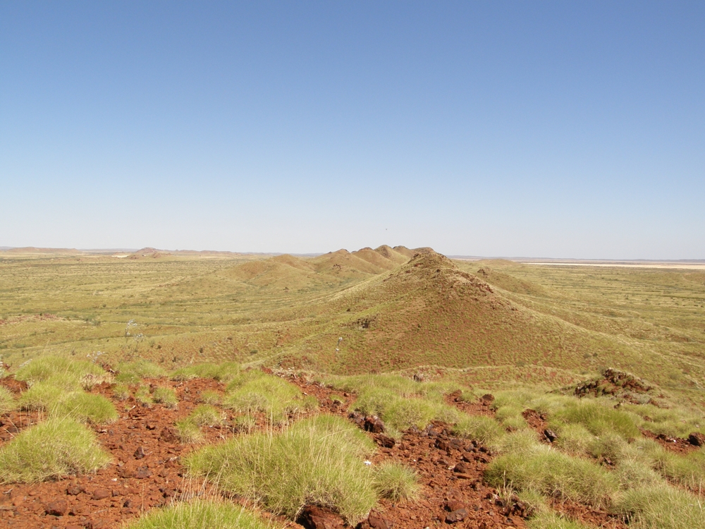 Die Eisenerze des Hemmersley Beckens (nur noch etwa 1.8 Milliarden Jahre alt). Wir haben dort Helidrilling gemacht, also eine kleine Bohranlage die nur mit Hubschrauber erreichbar ist. Gab daher einige gute Photogelegenheiten aus der Luft.