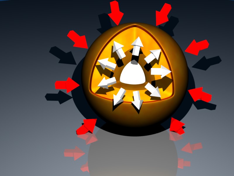 Falls du noch ein paar Verbesserungsvorschläge möchtest: In der 3. und 4. Grafik sieht der Schatten der Sonne etwas eigenartig aus. Entweder du lässt das licht von einem anderen Winkel einfallen, oder du lässt ihn ganz weg (mir erscheint es auch unlogisch, dass die Sonnen einen Schatten haben soll…). Außerdem wäre es besser (physikalisch korrekter), wenn die weißen Pfeile in der 4. Grafik radial vom Sonnenmittelpunkt nach außen zeigen würden und nicht so schräg. Aber ich weiß nicht, wie schwer oder leicht das umzusetzen ist, hab selber nie wirklich mit Blender gearbeitet, nur bisschen VRML und POV-Ray.