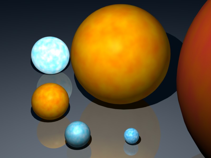 Auf jeden Fall hübsche Illustrationen! Mit der 3D-Visualisierung von Sternen hast Du Dir auch nicht unbedingt die leichteste Aufgabe gestellt. Wenn Du Dich nicht eingehender mit komplexeren Texturen beschäftigen willst, musst Du zumindest authentisch wirkende Shader erzeugen. Experimentiere doch neben den Glanzpunktparametern auch mal mit der Skalierung bzw. Wiederholrate der Shaderstruktur. Eventuell gibt es auch noch andere Rechenmuster, die einer Sternenoberfläche näher kommen (fractal, noise…). Um zu vermeiden, dass die Kugeloberflächen so glatt erscheinen, könntest Du mal versuchen, noch ein Bump-Map zu verwenden (kann Blender bestimmt!). Da Du wohl erstmal nur Standbilder (keine Animation) erzeugen willst, könntest Du Dir auch überlegen, den Bildern mit einer Nachbearbeitung in Gimp oder besser Photoshop den letzten Schliff zu geben. Damit würde sich auch eine Korona recht gut und einfacher gestalten lassen… Wenn Du mal zum Treffen kommst, könnten wir mal einen Cinema4D- oder Maya-Crashkurs machen! ;-) Grüße, Peter |