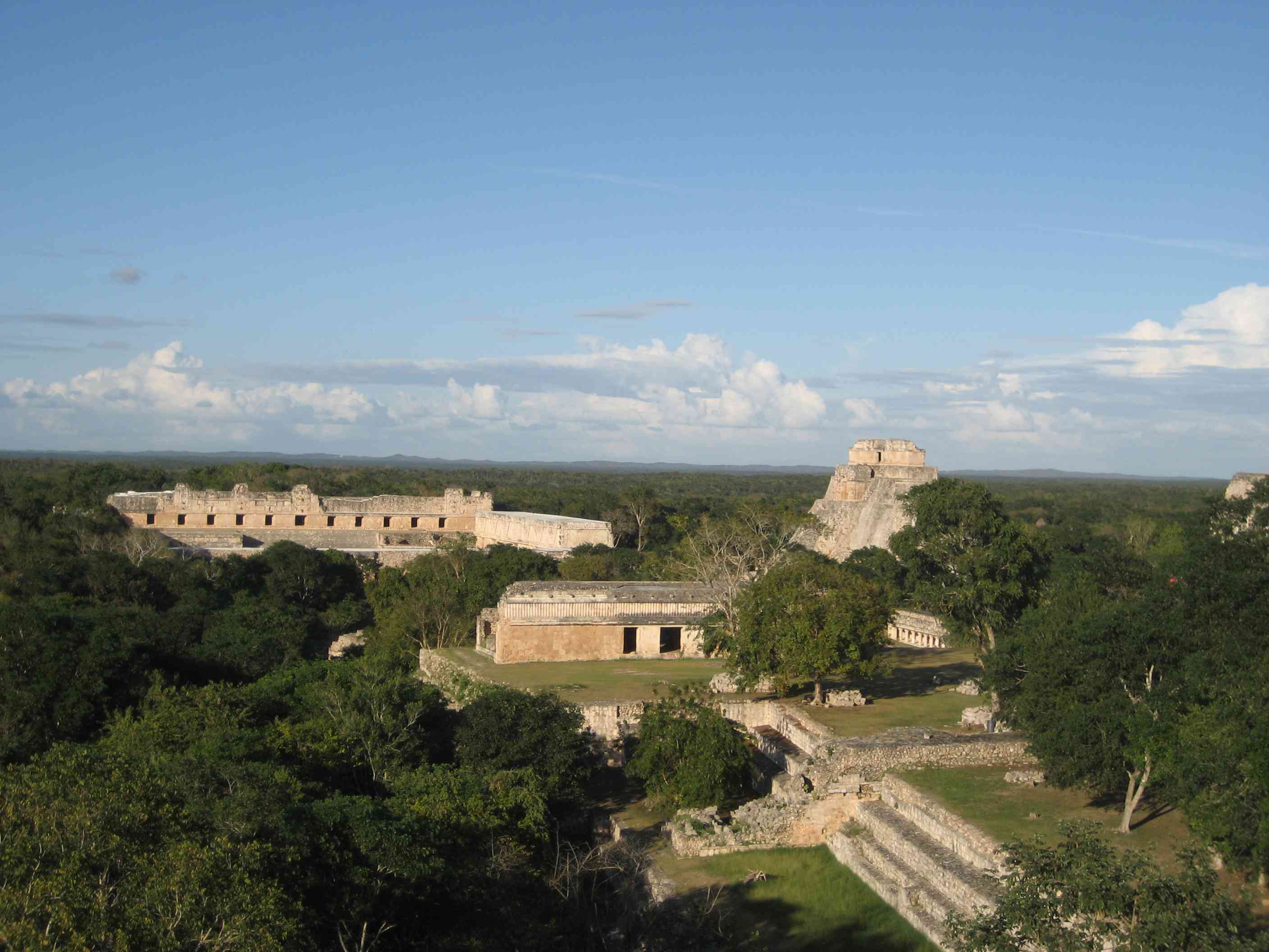Als erstes ging es zur Ausgrabungsstätte Uxmal. Der Architektur Uxmals fehlen mexikanische toltekische Stilelemente, so dass in Uxmal die klassische Maya-Bauweise des Puuc-Stils (benannt nach der Hügelkette im Nordwesten) vorherrscht. Uxmal wurde nicht wie anderer Städte um einen oder  mehrere Cenotes angelegt, weil es diese Wasserlöcher in dieser Gegend nicht gab. Man behalf sich mit sog. Aguadas und Chultunes; sogenannten abgedichteten Erdeinbrüchen. bzw. künstlich geschaffenen Zisternen in denen Regenwaser gesammelt wurde.