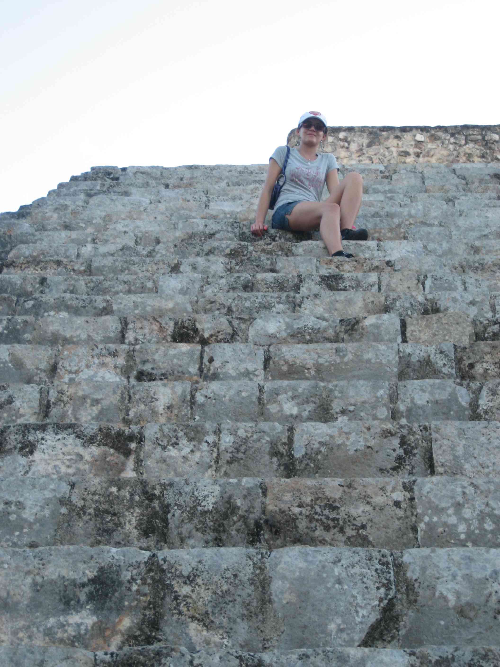 In der Stadt Izamal besichtigten wir einen Mayamarkt, ähnlich unserem Wochenmarkt, ein Kloster und bestiegen die Pyramide Kinich Kak Moo. Diese ist ca. 34 m hoch und wurde zw. 400 – 600 nach Christus erbaut. Der Standort dieses Bauwerks wurde durch eine Höhle oder einen Kalkstein Förderschacht beeinflusst. Die Pyramide wurde einem Sonnengott gewidmet. Besonders außergewöhnlich  sind die großen Steine, die für die Stufen und die Mauerbrüstung verwendet wurden.