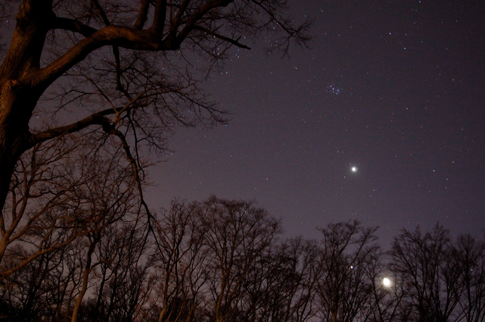 Jupiter. Venus, Mond und Plejaden