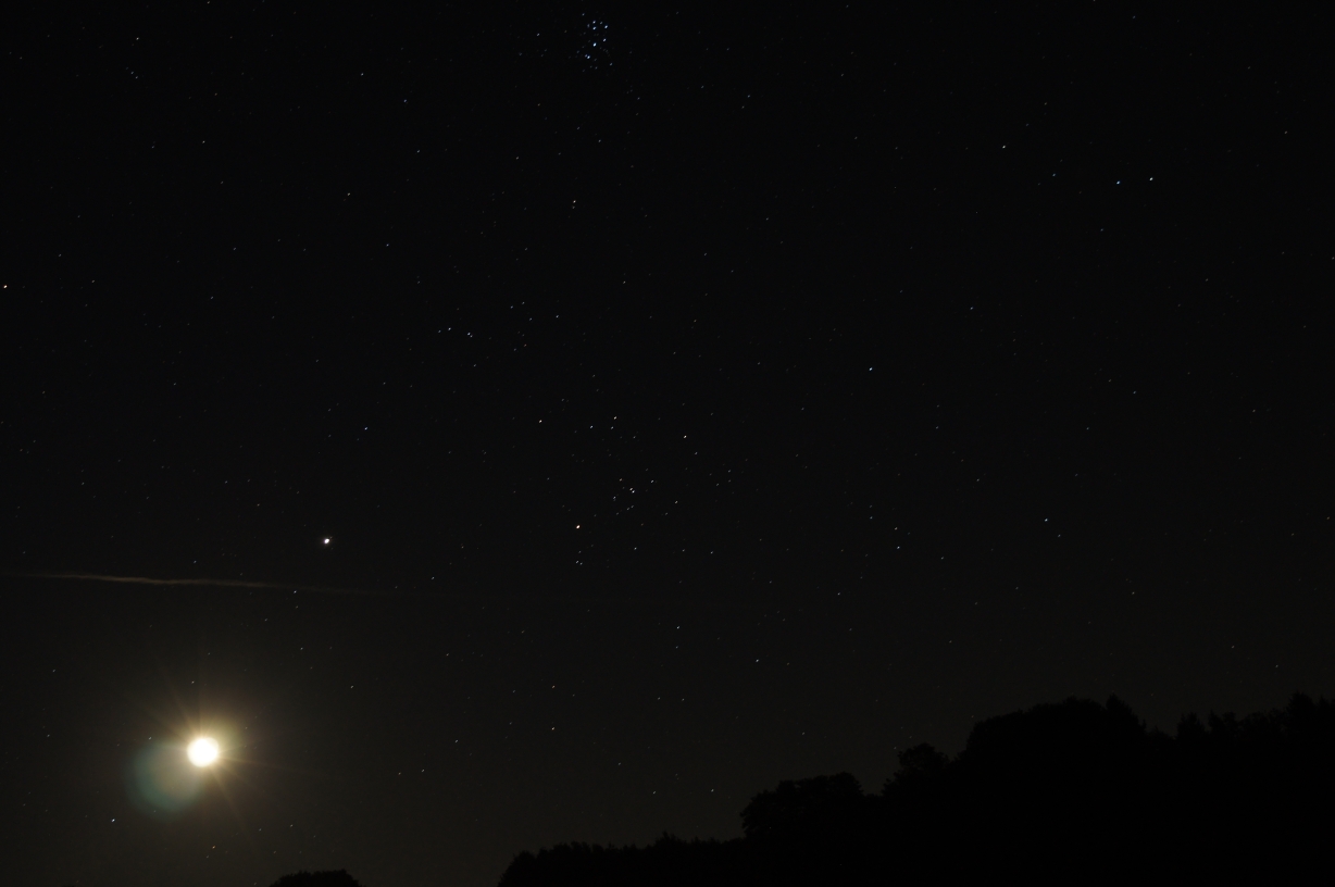 Unteranderem vom Schwan, H und Chi und der Konstellation Plejaden Mond Jupiter und Stier.